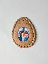 Икона в бересте для ношения с собой. На иконе изображено Святая Троица.